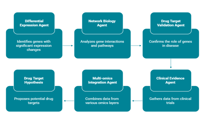 Instead of static pipelines, this multi-agent architecture enables dynamic reasoning and hypothesis generation.